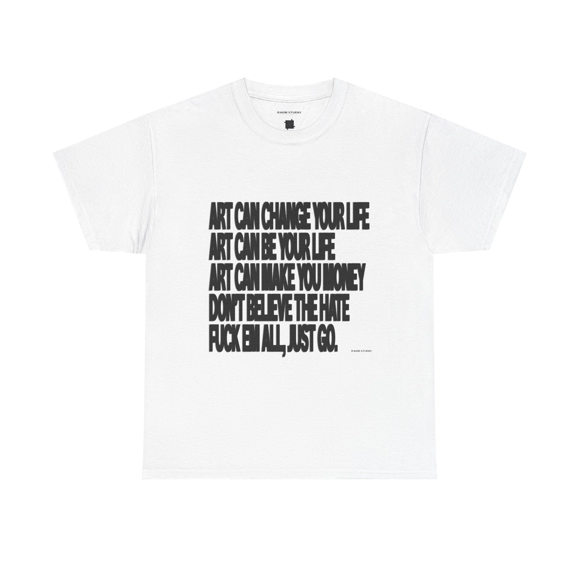 Graphic Tee — "Art Can Change Your Life" Motivational Text Shirt